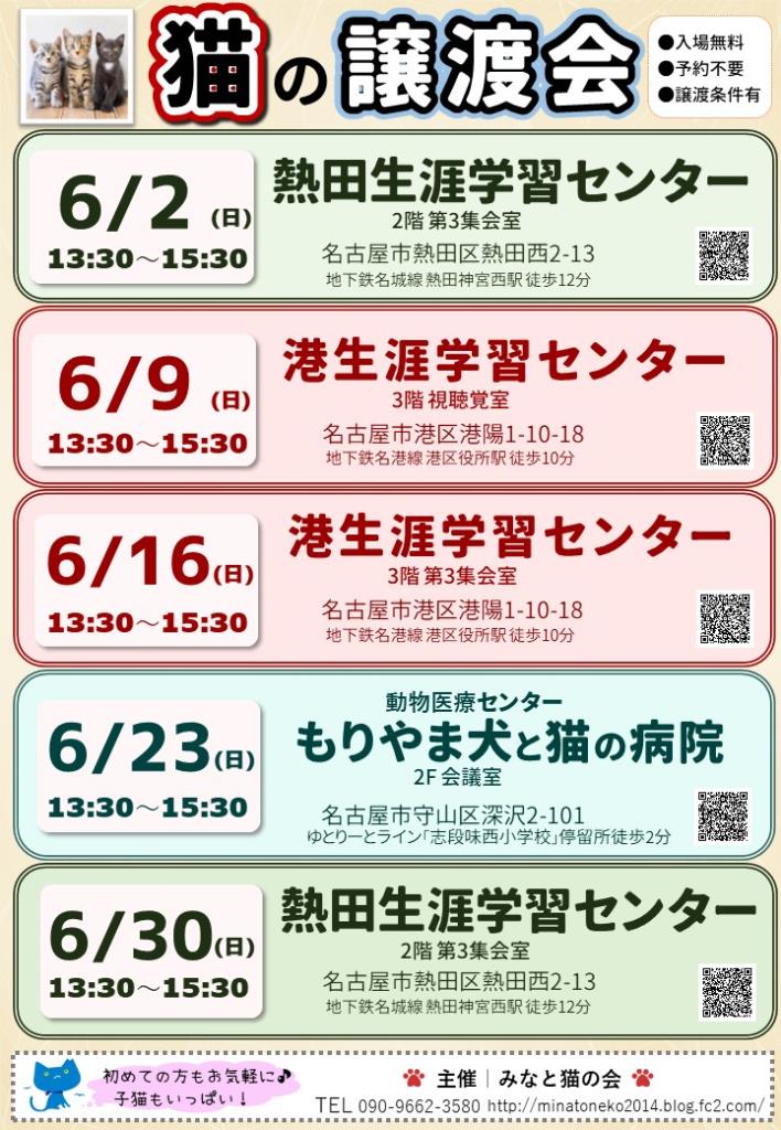 6月16日(日)名古屋市港区 港生涯学習センター 猫の譲渡会