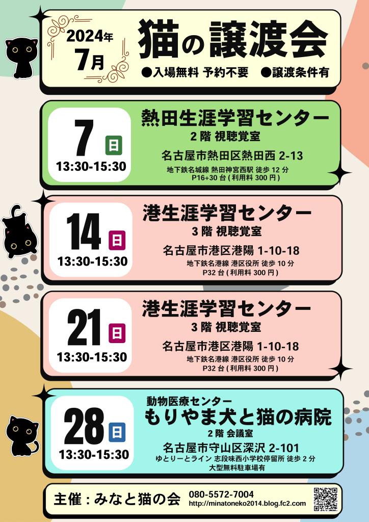 7月21日(日)名古屋市港区 港生涯学習センター 猫の譲渡会