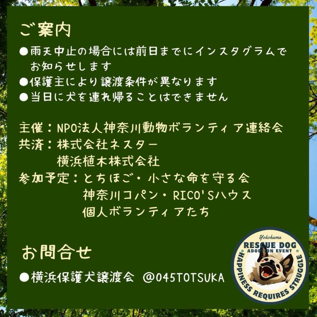 雨天中止の場合には前日までにインスタグラム@045totsuka にてお知らせします。