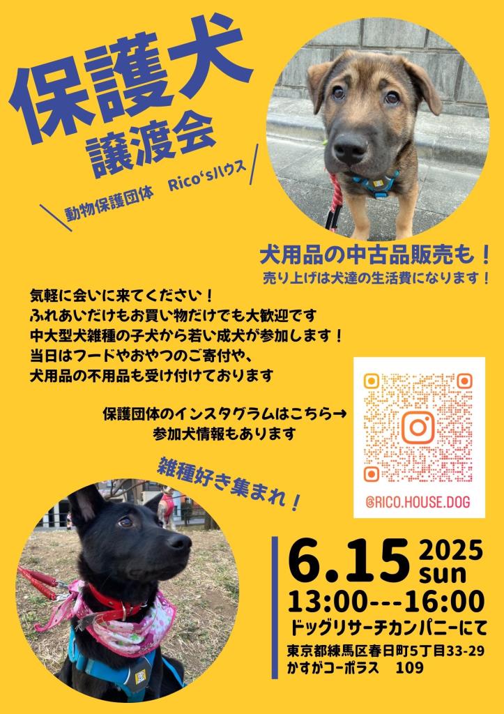 元野犬や愛護センター収容の中型雑種犬の譲渡会です!