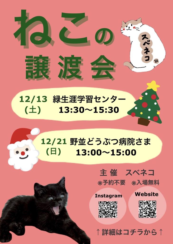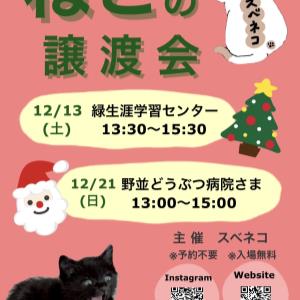12月21日(日) スベネコ猫の譲渡会 @天白区野並どうぶつ病院