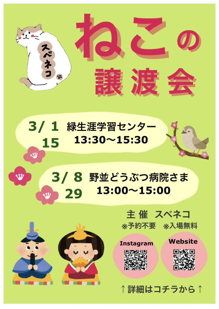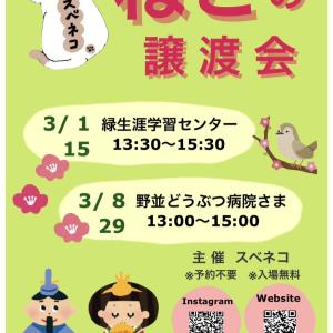 3月1日(日)スベネコ 猫の譲渡会@緑生涯学習センター(名古屋市緑区)