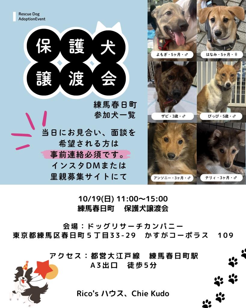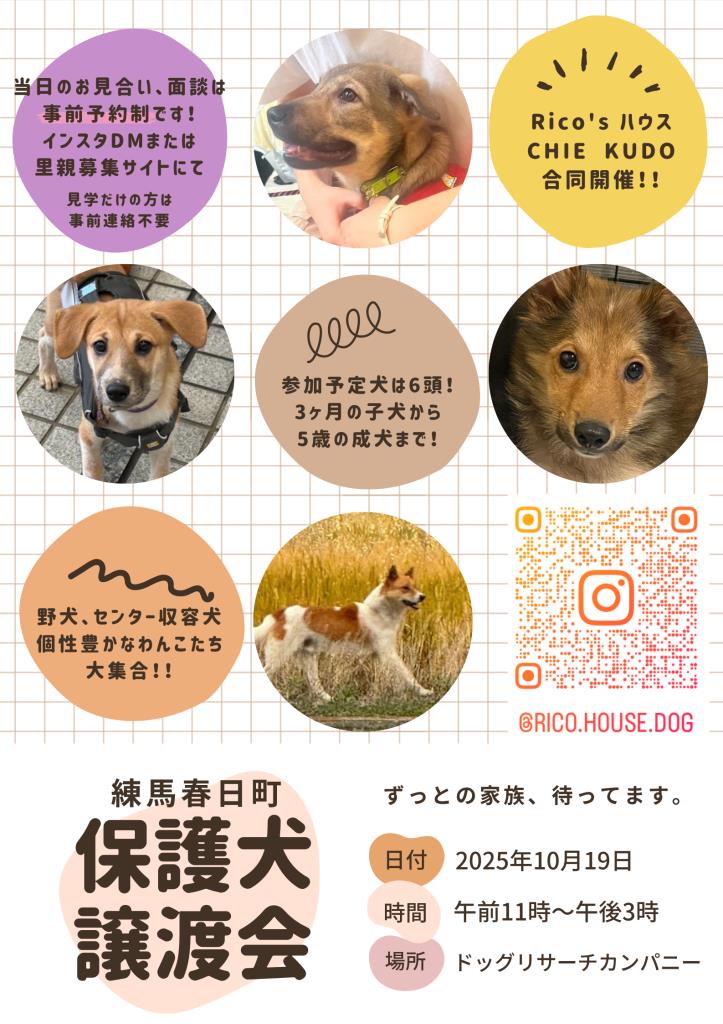 団体のインスタ @rico.house.dogのDMか、ハグーまたはペットのおうちの希望の子の里親募集へご応募ください。