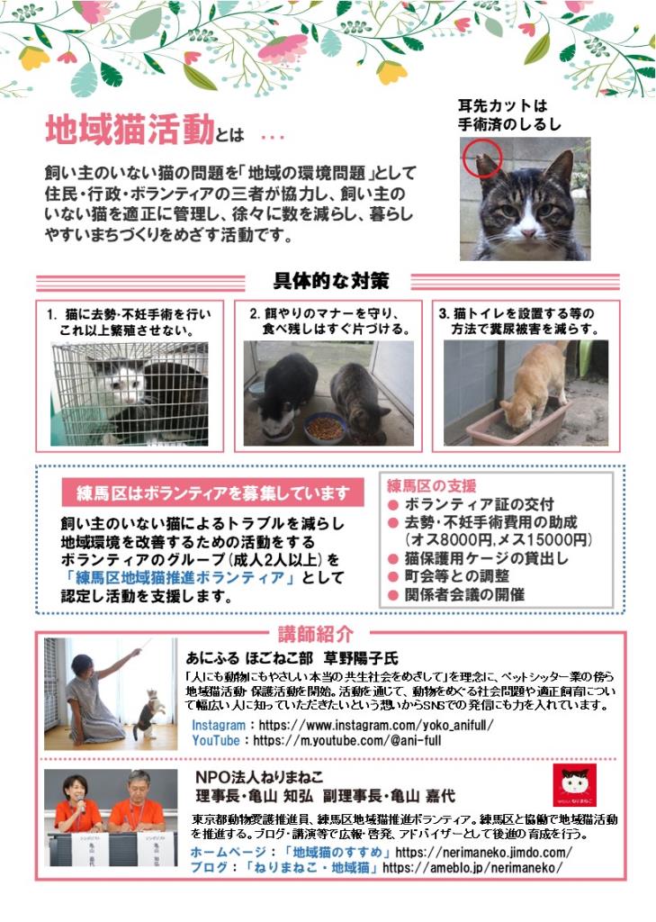 ●地域猫制度・ペット終生飼養相談支援事業の説明 練馬区保健所