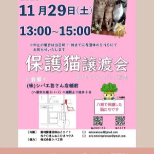 譲渡会は屋外の会場となるため、気温や悪天候により中止となる場合には、前日もしくは当日午前11時までにSNSで告知させていただきます。