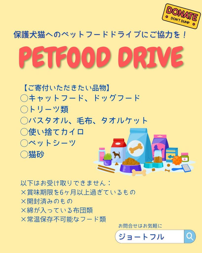 ☆ペットフードドライブにご協力お願いします