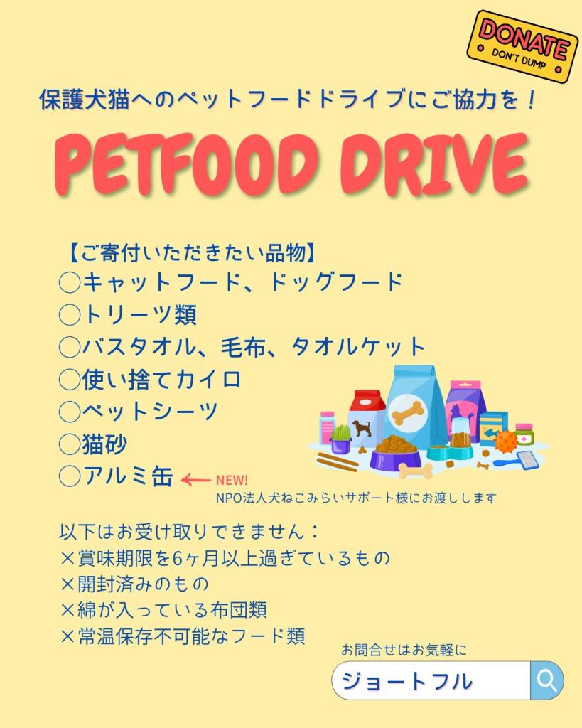 ☆ペットフードドライブにご協力お願いします