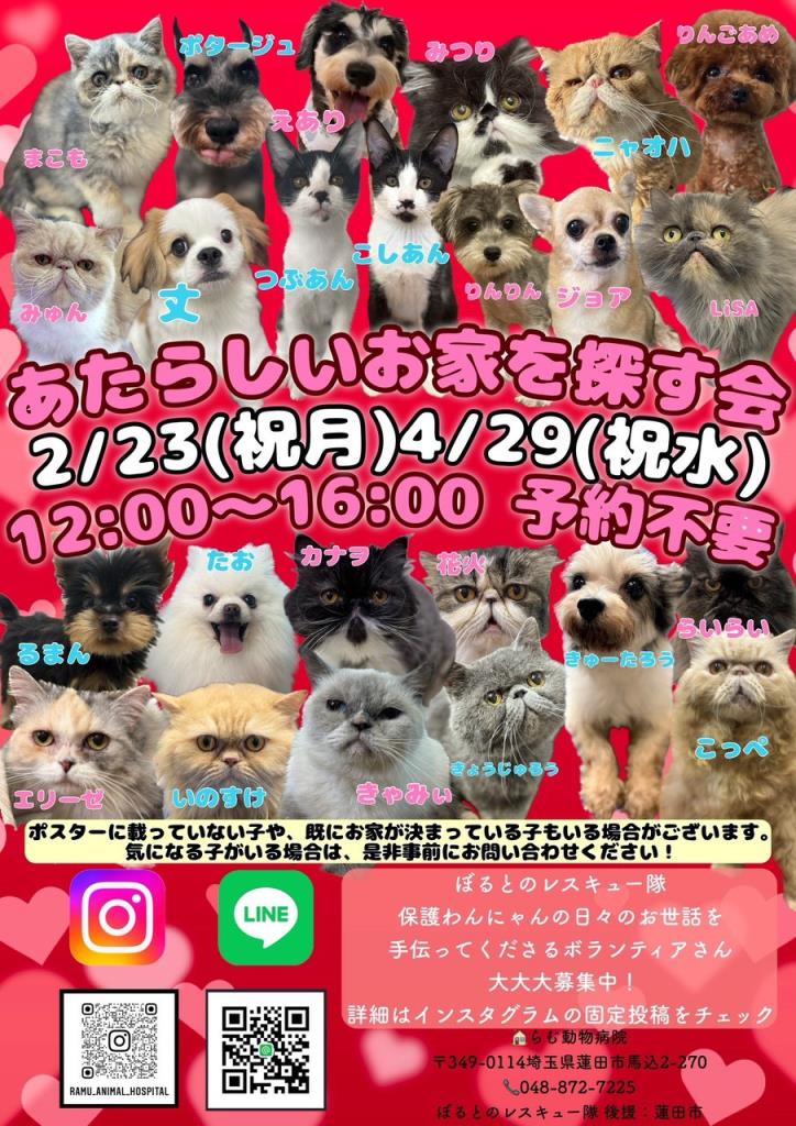 らむ動物病院にて里親募集中のわんにゃんが集まります!