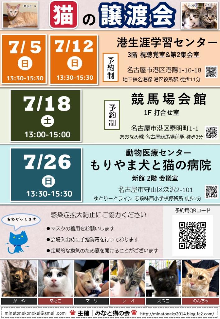 7月26日(日) 名古屋市守山区 もりやま犬と猫の病院 猫の譲渡会