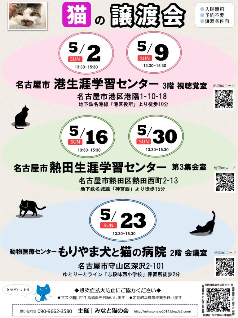 2021年5月30日(日) 名古屋市熱田区 熱田生涯学習センター 猫の譲渡会