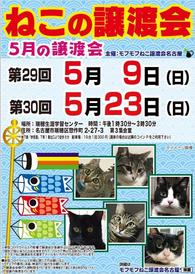 5月23日(日) 猫の譲渡会 in 名古屋市瑞穂生涯学習センター