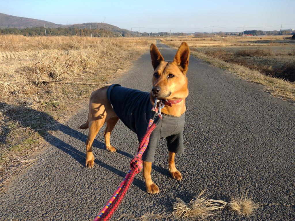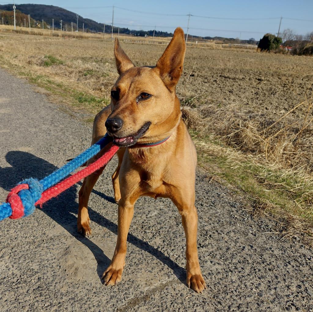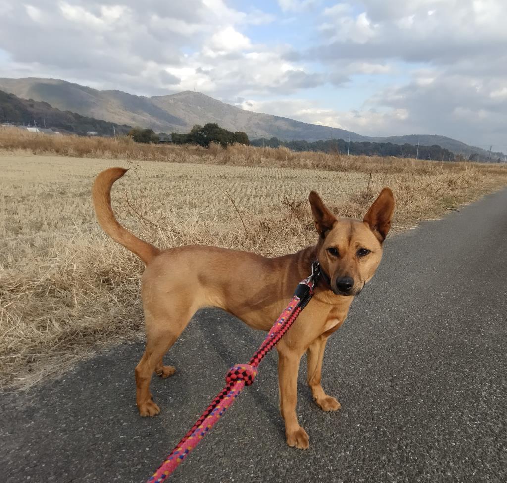 散歩していても興味深々でワイワイ、リードの引きは少し強めですが人間がしっかりリードすればきちんと歩いてくれます。