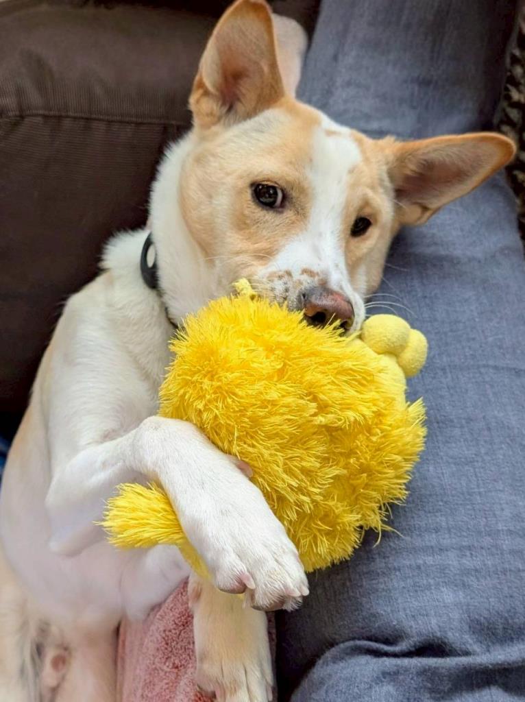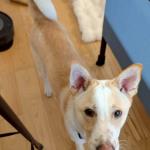 身体は小柄で白と茶色のミックスカラー。
