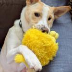 オモチャで遊ぶ事が大好きで、お気に入りのオモチャをくわえて「遊ぼう」と誘ってきます。