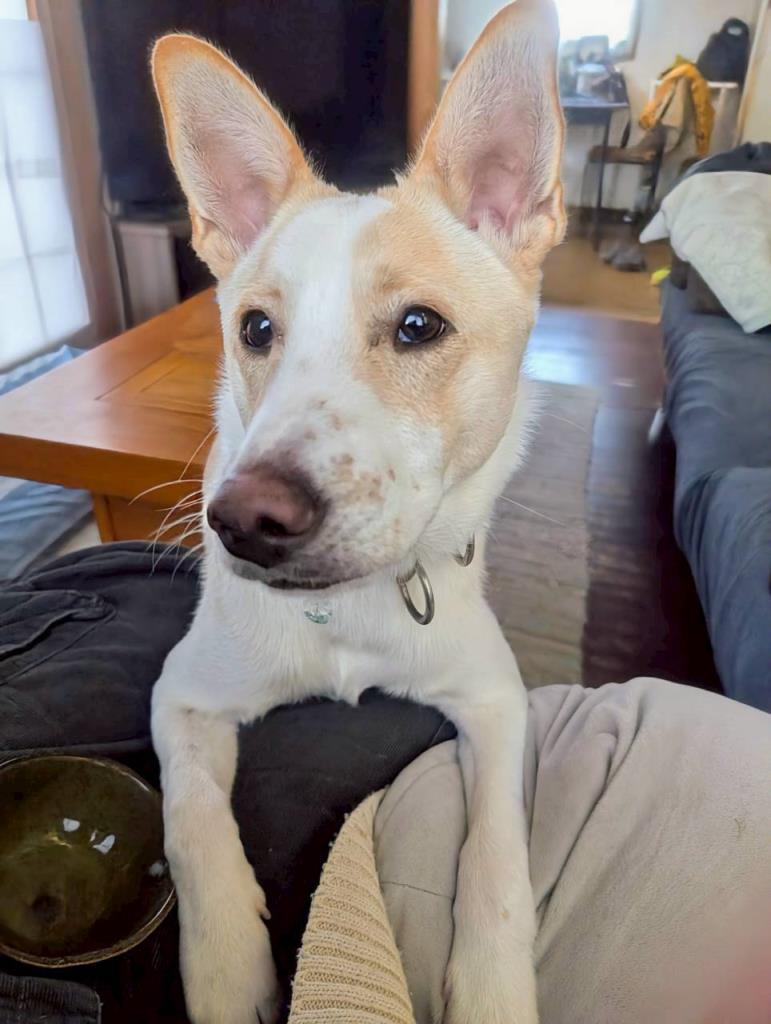 小顔で立派なお耳はピンと立っています甘える時はペタンと無くなり可愛い表情をしてくれます。