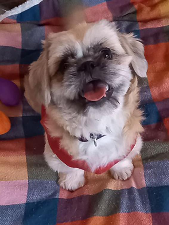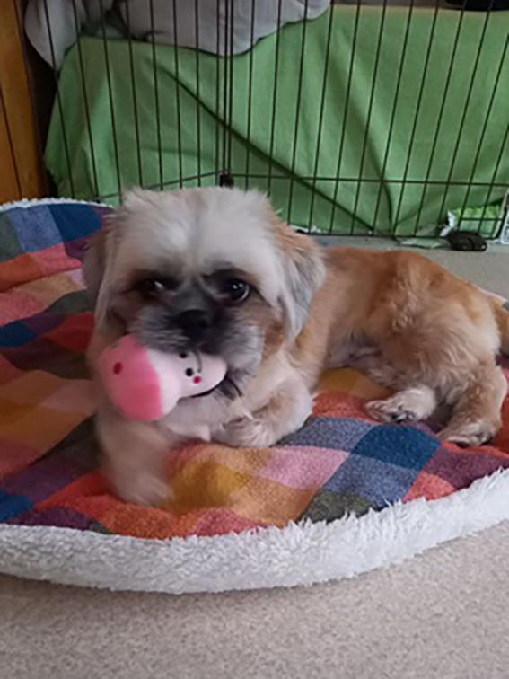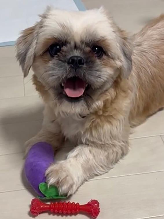 体形はペキニーズ、お顔はシーズーな感じでとても愛らしい子です。