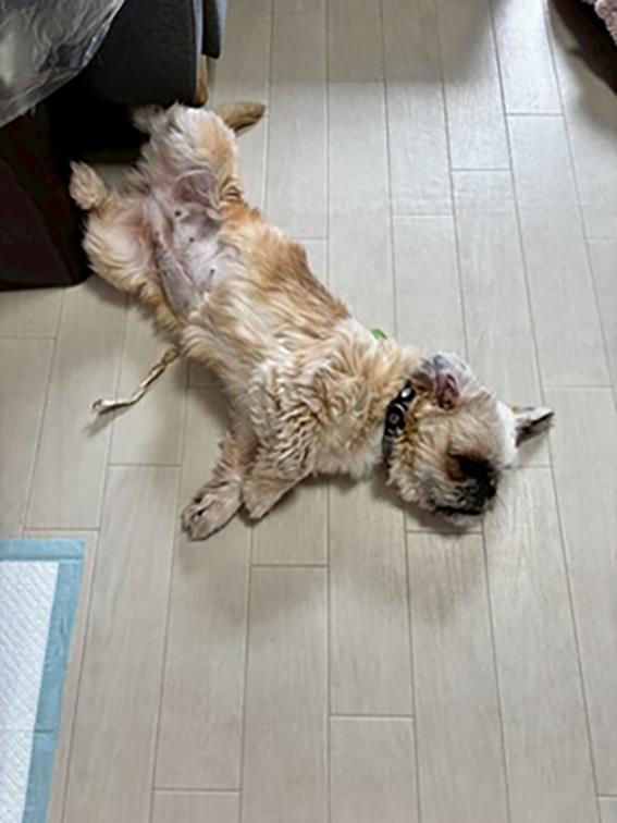 家人には撫でられたり褒められたりするのが好きでお腹をぺろんとだします。 家人の傍にいるのが好きです。