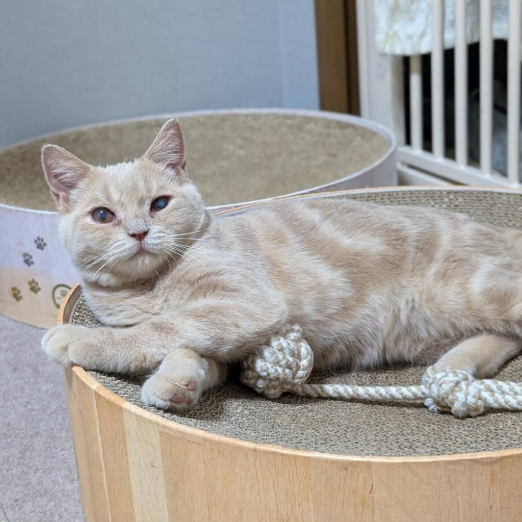 特記:猫風邪で目に水疱ができましたが、現在は目の表面は治りましたが、左目だけ白濁しています。視力は今のところ問題ありませんので今後経過を見てください。1日1回点鼻薬しています。