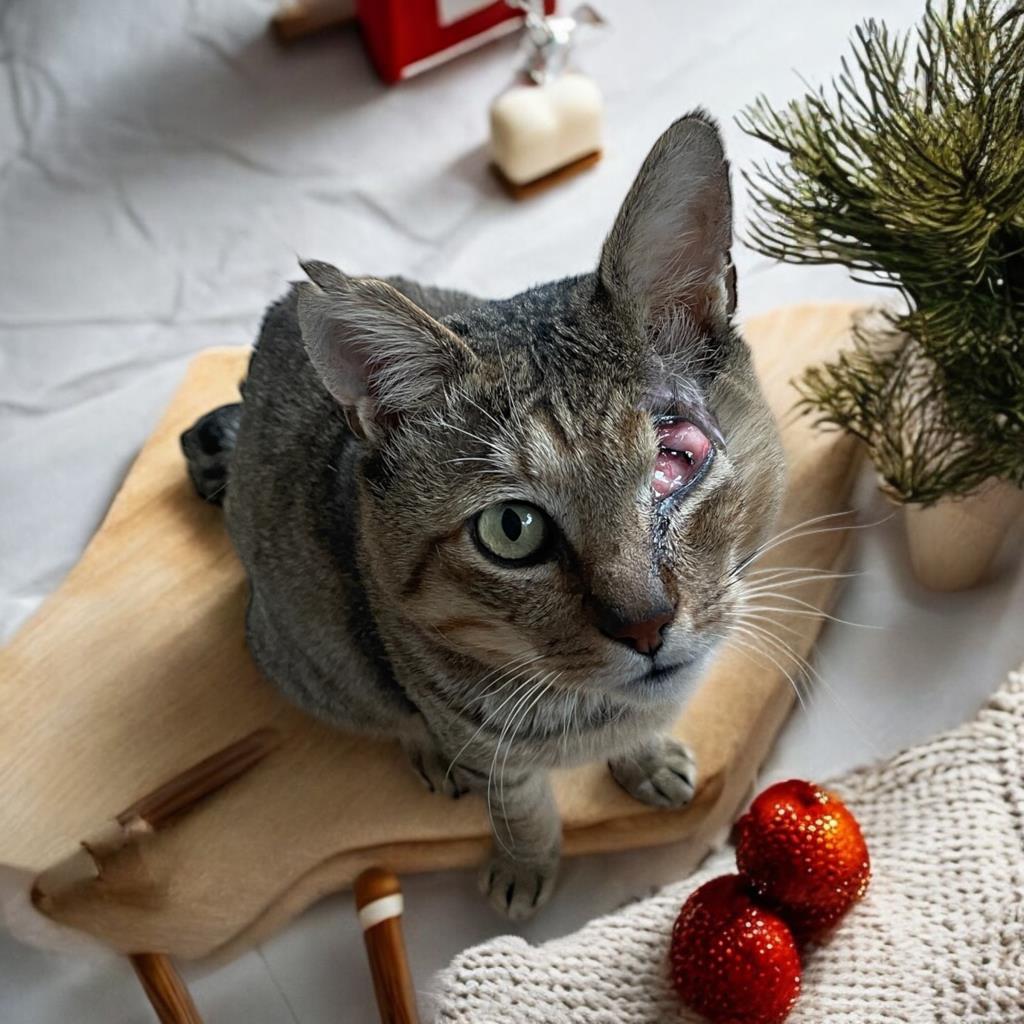 怪我をしている猫がいるとの通報で駆けつけた時には、顔左半分が壊死しウジが数え切れないほど付いていて、病院でも安楽死がいいのでは…と思うくらいの怪我でしたが、皮膚の切除と虫の駆除洗浄をして下さり、それからは連れ帰って毎日の消毒薬包帯の巻直しをして、奇跡的な回復を見せてくれました。