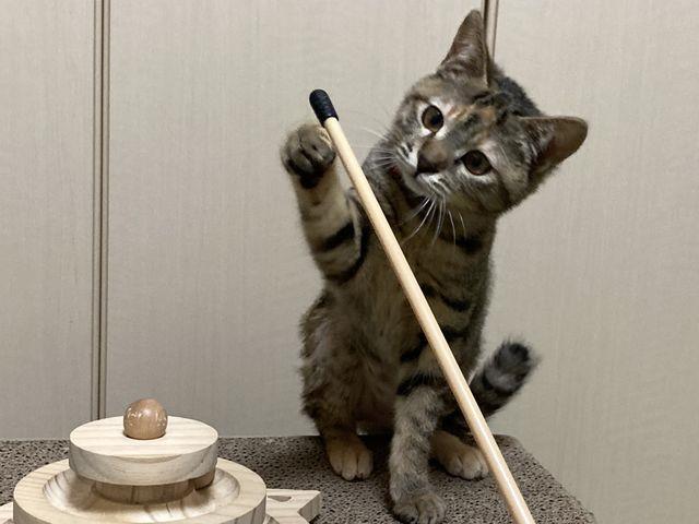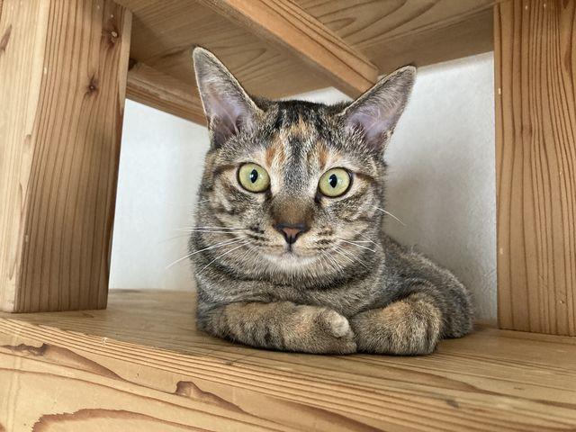 超ビビリさんなので、人や新しいことに慣れるまでに時間がかかりますが、先輩にゃんこたちの様子をよく見て真似をしながら、少しずつ楽しい時間を獲得しています。