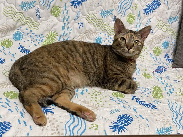 右後肢からお腹にかけての大怪我が治り、先輩にゃんこたちと元気に遊べるようになりました。