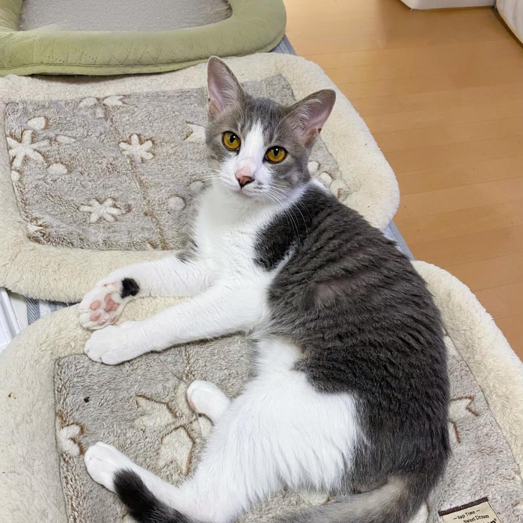 子猫の時に骨盤を骨折した状態で保護され、2回の手術を終え問題なく過ごしています。甘えん坊ですが甘噛みがあります。声が大きいので戸建住まいであることと、1匹飼育を条件とさせていただきます。エイズ・白血病ー陰性