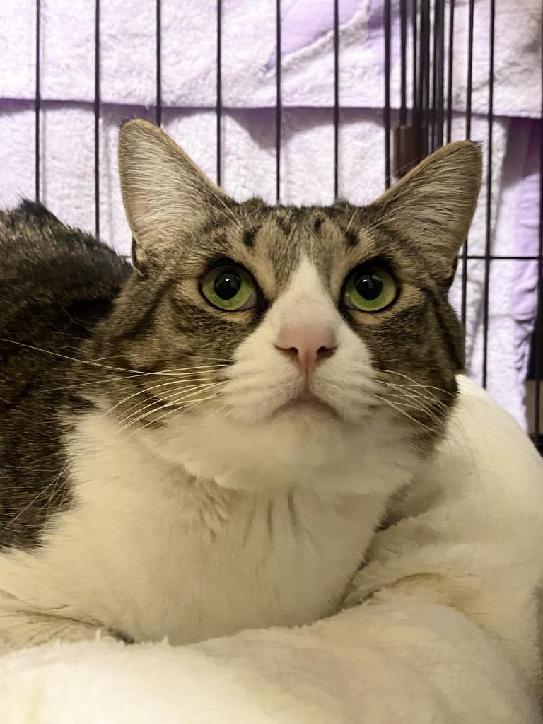 姉妹のオレオと一緒に保護されましたが、もっと良いご縁に恵まれるようにとラッキーに入学しました🐾オレオよりもちょっと恥ずかしがりですが、最近はすっかり慣れてみんなに甘えてくれてます☺️ハチワレ部分と髭袋が逆向きのハートに見えるところがチャームポイントです🧡