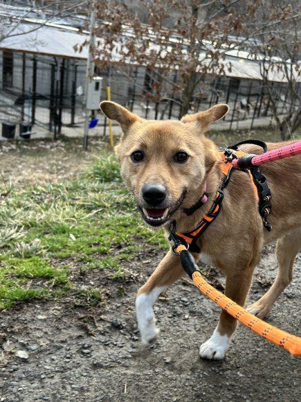 色々な音にまだ怖がり、跳ねたりはしますが、普通の時は人の隣を上手に歩けます✨