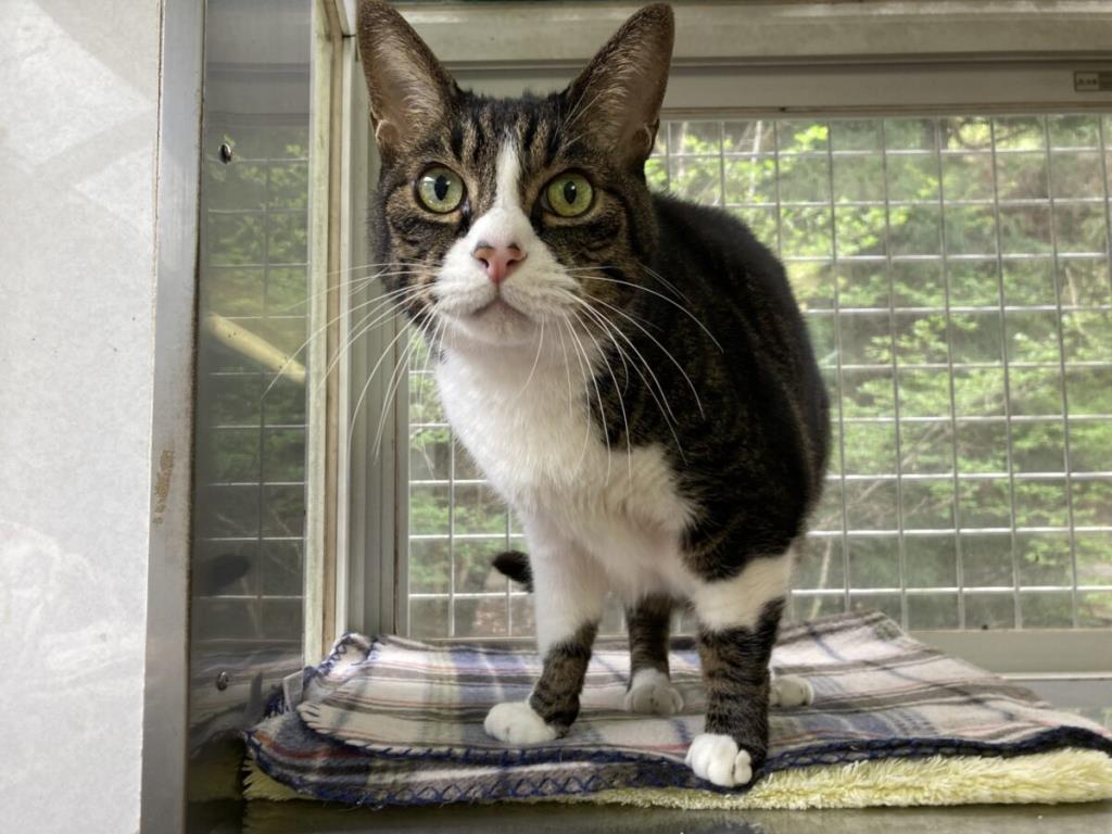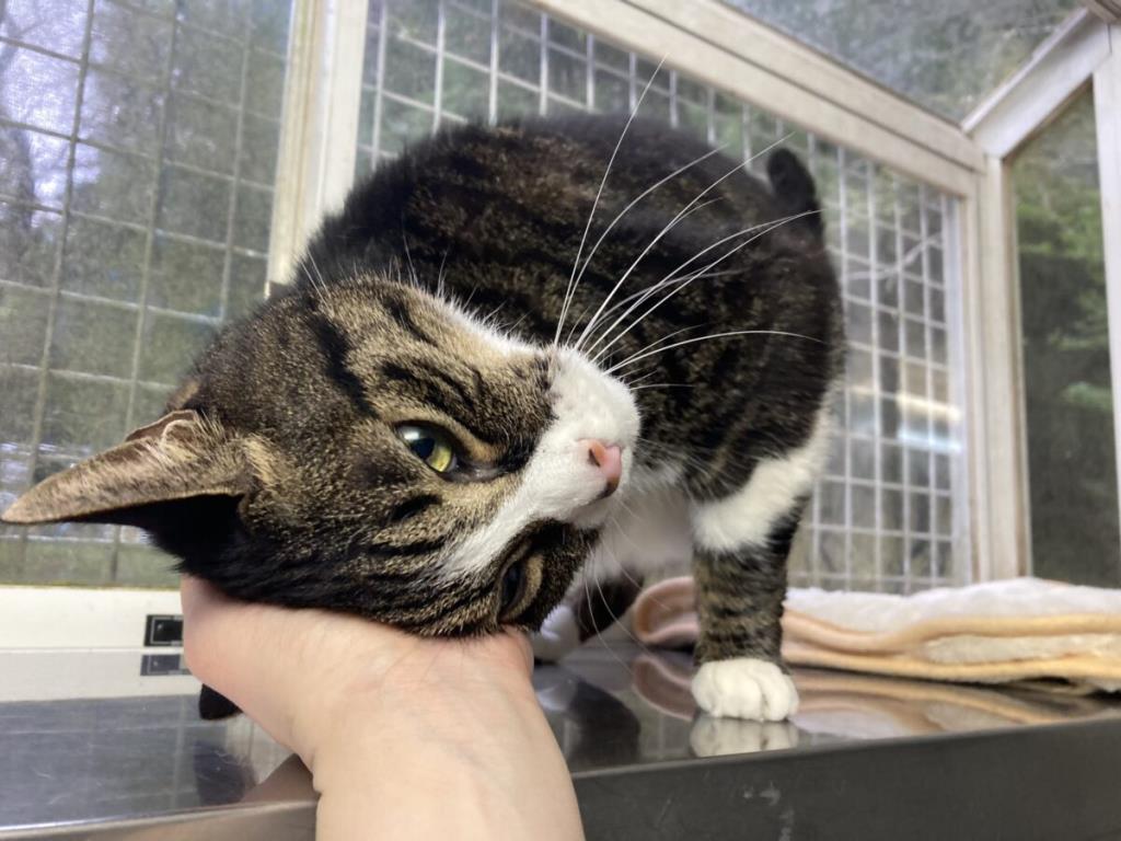 環境の変化にも強く、初日から隠れることなくお部屋の探検もできました。人見知りもなくとっても甘えん坊。手を差し出すと頭突きで撫でてのおねだりをしてくれます。シニアでの急な環境の変化の中でもとてもよく頑張ってくれています。残りの猫生を安心して過ごせるお家が見つかりますように。