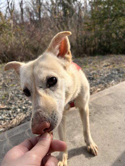 お散歩はまだ練習中ですが、おやつがあればなんだって頑張れるプッチーニちゃんです💪🔥