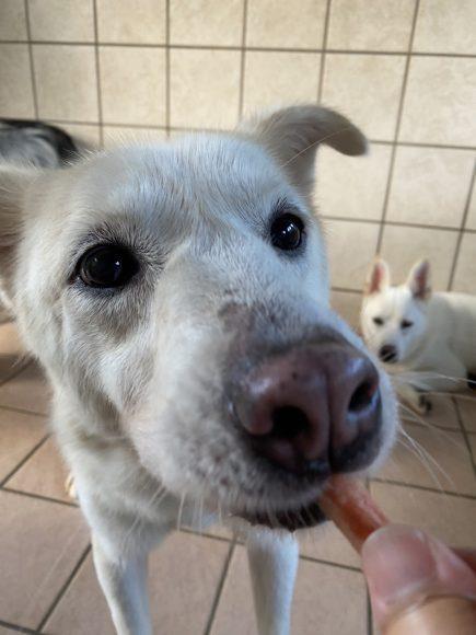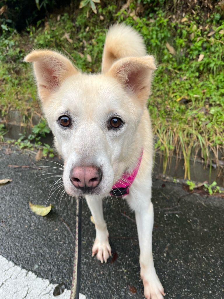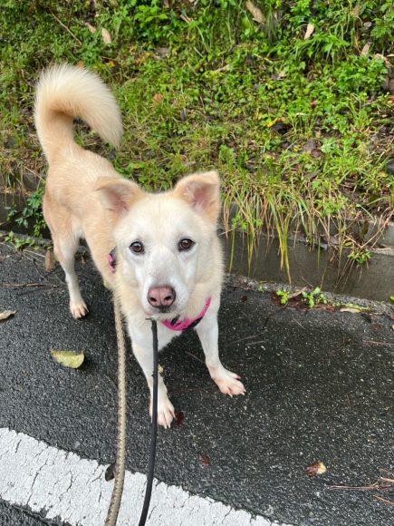 お散歩中でもおやつが出てくるかと期待して人のことを見上げてくれます。