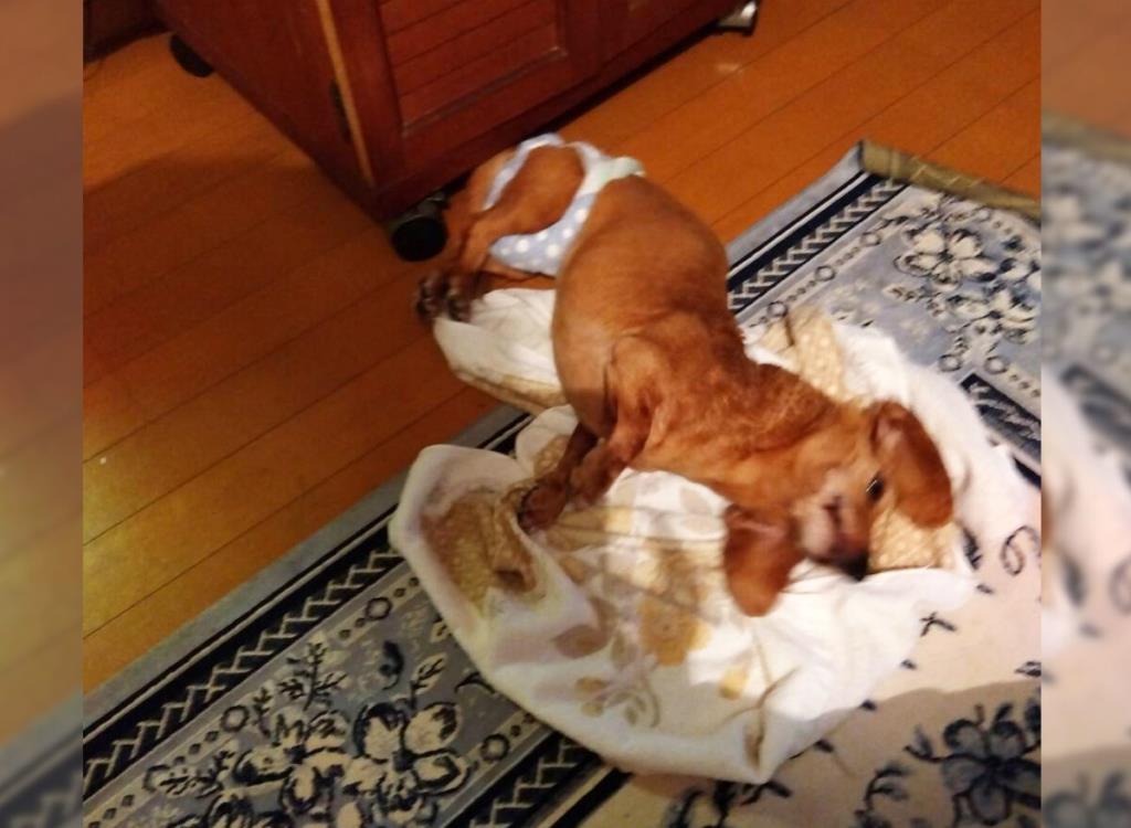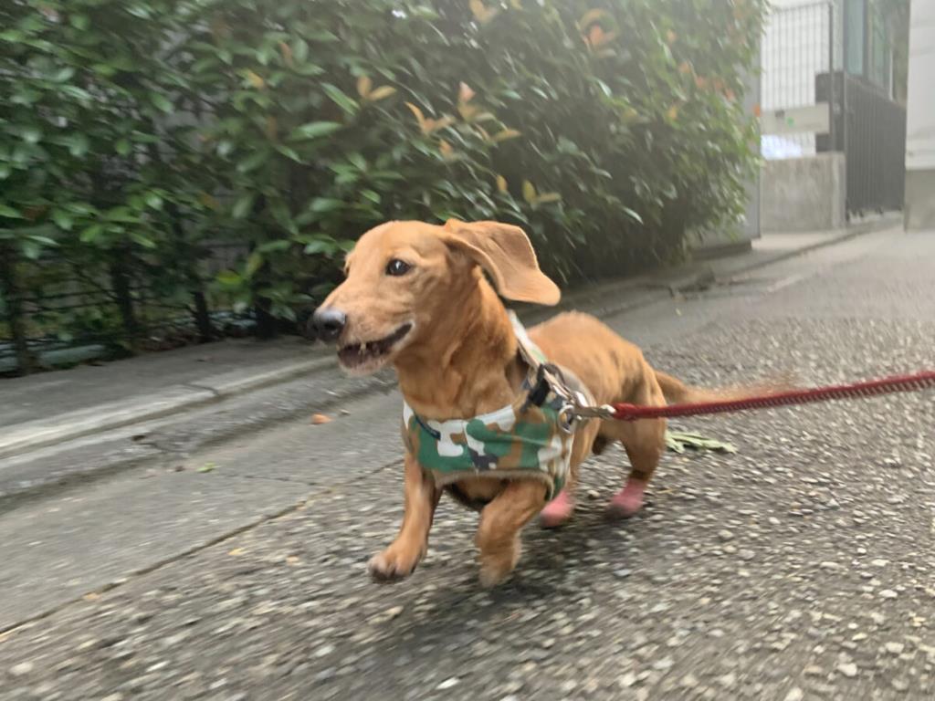 ヘルニアの影響で後脚を引きずってしまうこともありますが、本人は気にせずにルンルン歩きながら元気にリハビリ中です!