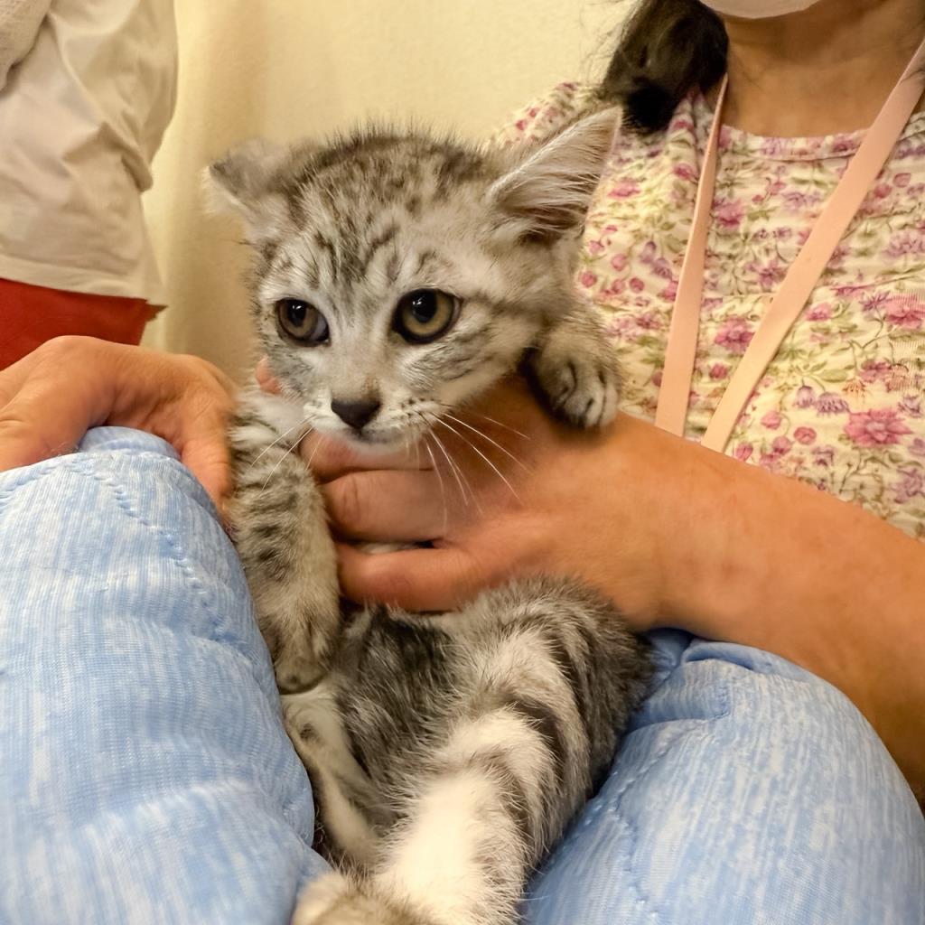 カラスに襲われ、深く傷つき衰弱していたところを保護されました。耳からは大量の血が流れ、耳の先は損傷していました。しかし、メンバーMさんの懸命な治療と看護の結果、この子は奇跡的に回復し、今は元気に過ごしています。心に負った傷から、最初は人に対して警戒心が強かったものの、今ではそっと寄り添い、優しく撫でると喜ぶようになりました。この子の全てを受け入れ、生涯を共に過ごしてくれる里親さんを募集しています。