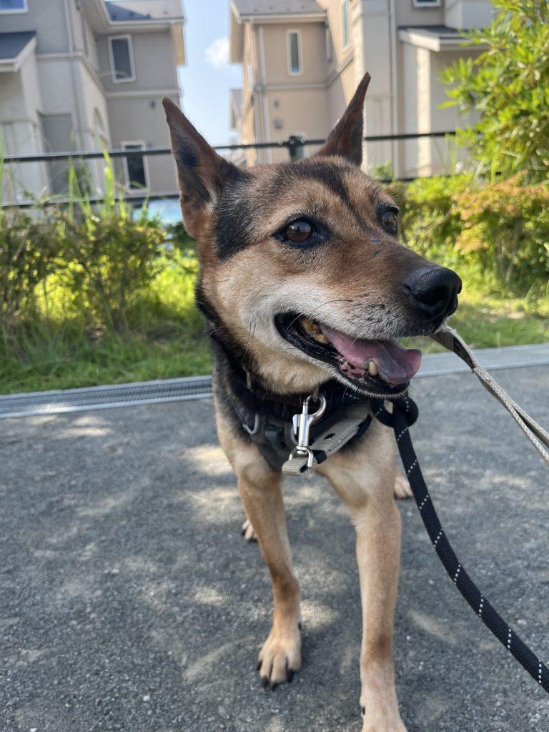 【散歩】 まだ慣れなくてきょろきょろしながら歩きます