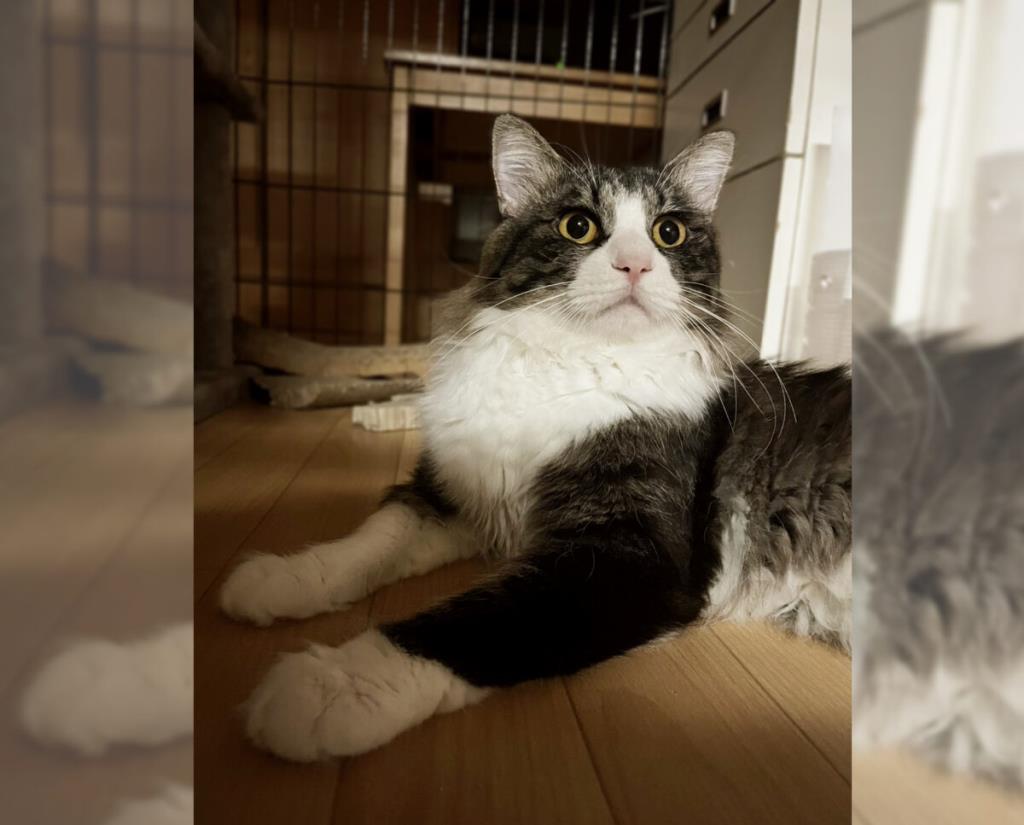 ゴージャスな見た目のイケニャン・メロンくんです。ナデナデされるとうっとり&ゴロンと転がってお腹を見せてくれます◎