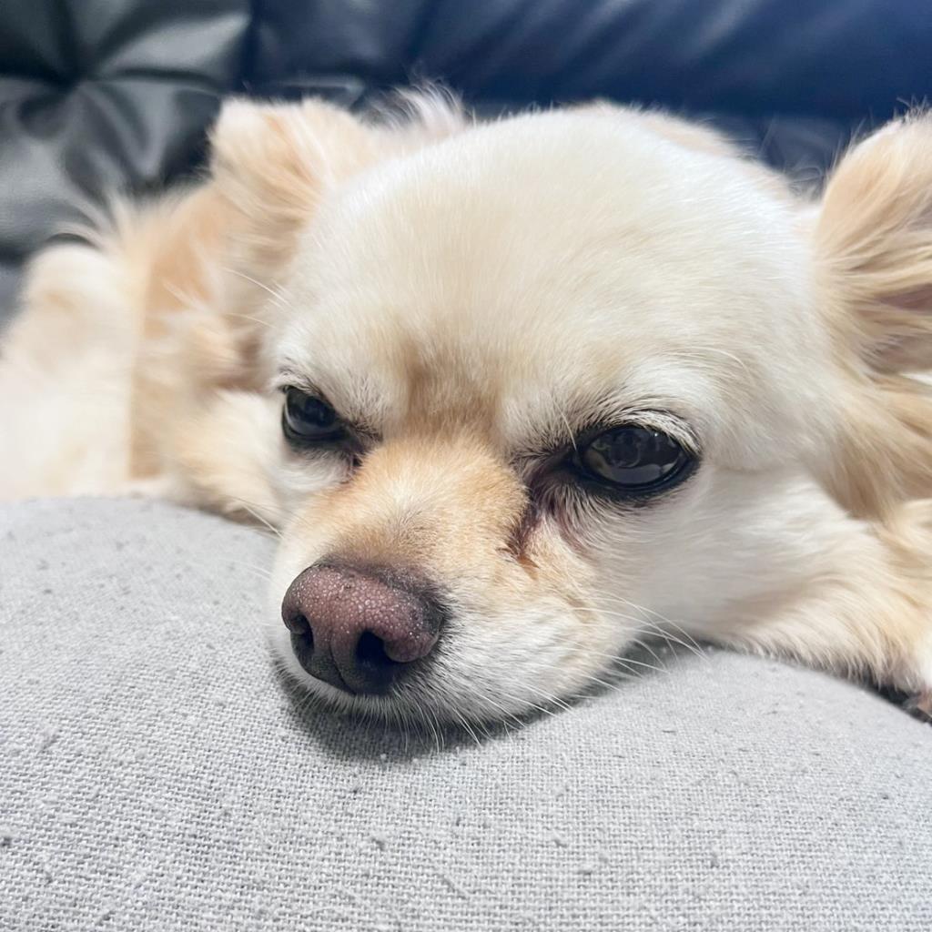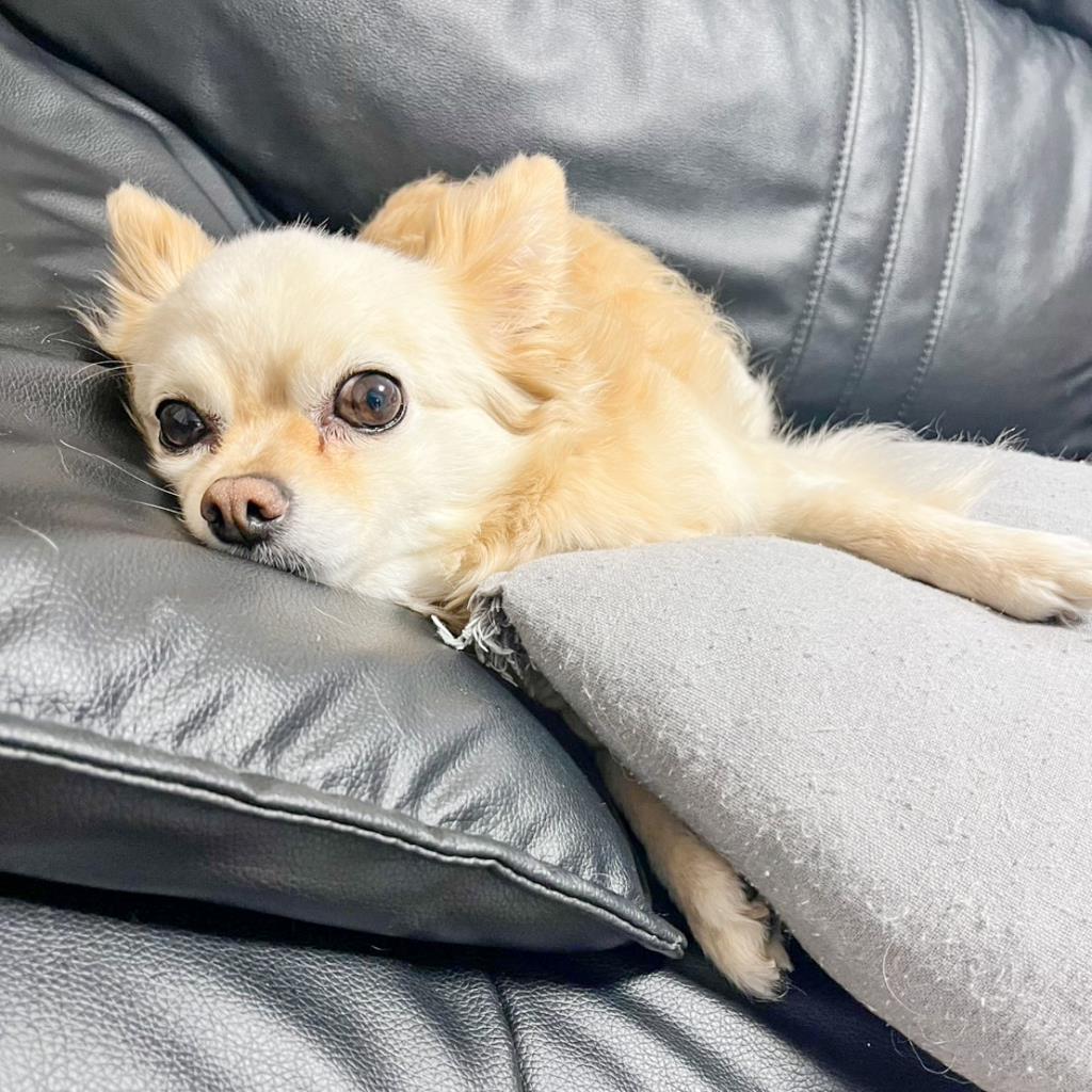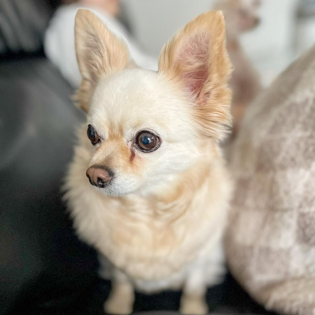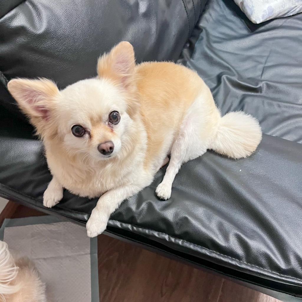 預かりから一言:9歳、成熟した魅力いっぱいの可愛いビックチワワのごんべえです。もともとは家庭犬だった繊細な性格のごんちゃんは、現在多頭生活を勉強中。犬より人が好きで、人のそばでゆっくり甘えて過ごすのが好きな子です。