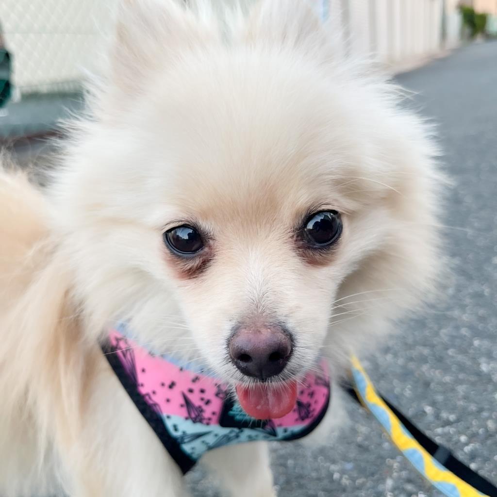散歩:リードを見せると大喜びをしますが、外に出ると立ち止まり進むのに時間がかかる事があります・
