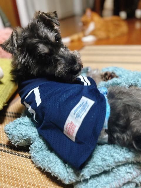 ・ガリガリの状態で保護されたため、食事と運動で身体づくり中です。体重は6キロ代目標です。