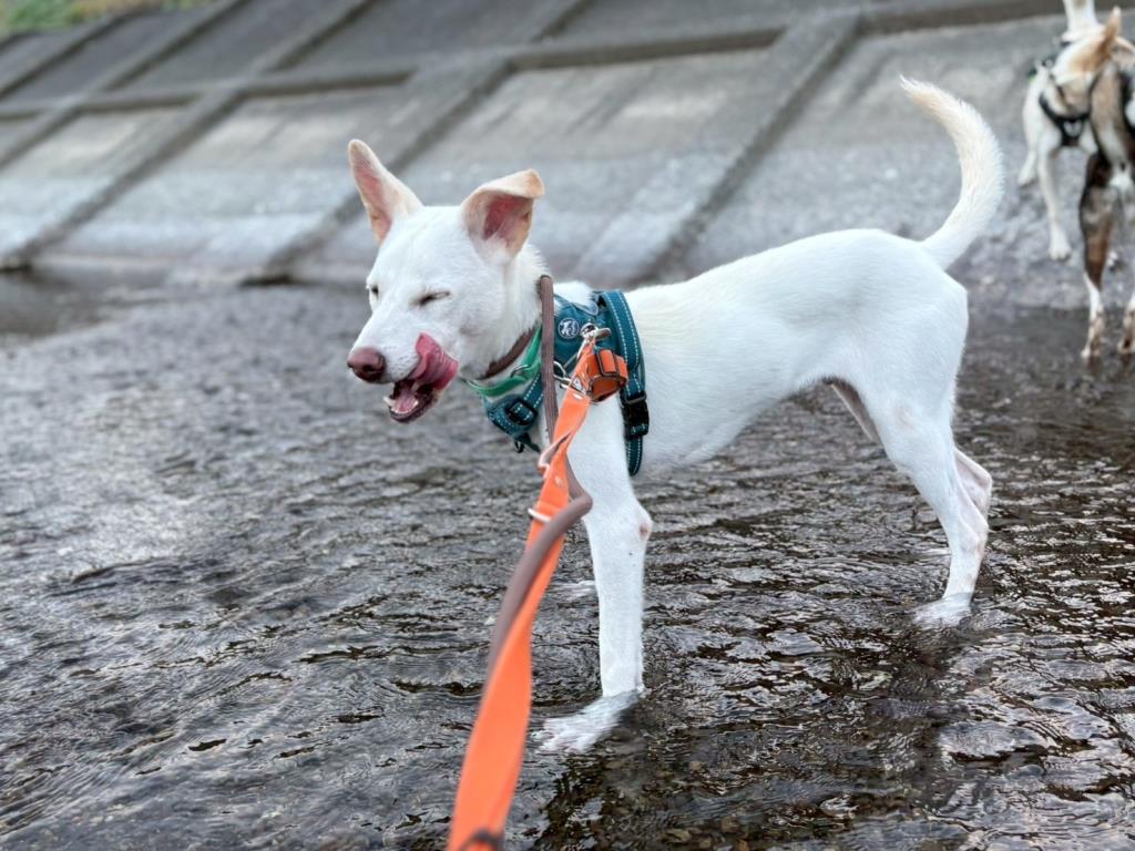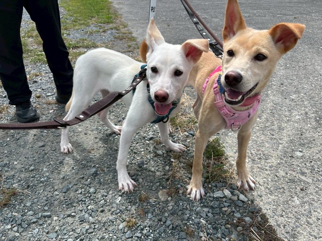 【散歩】一頭だとまだ不安そうですが、他のわんこと一緒に行くととても楽しそうに歩きます!