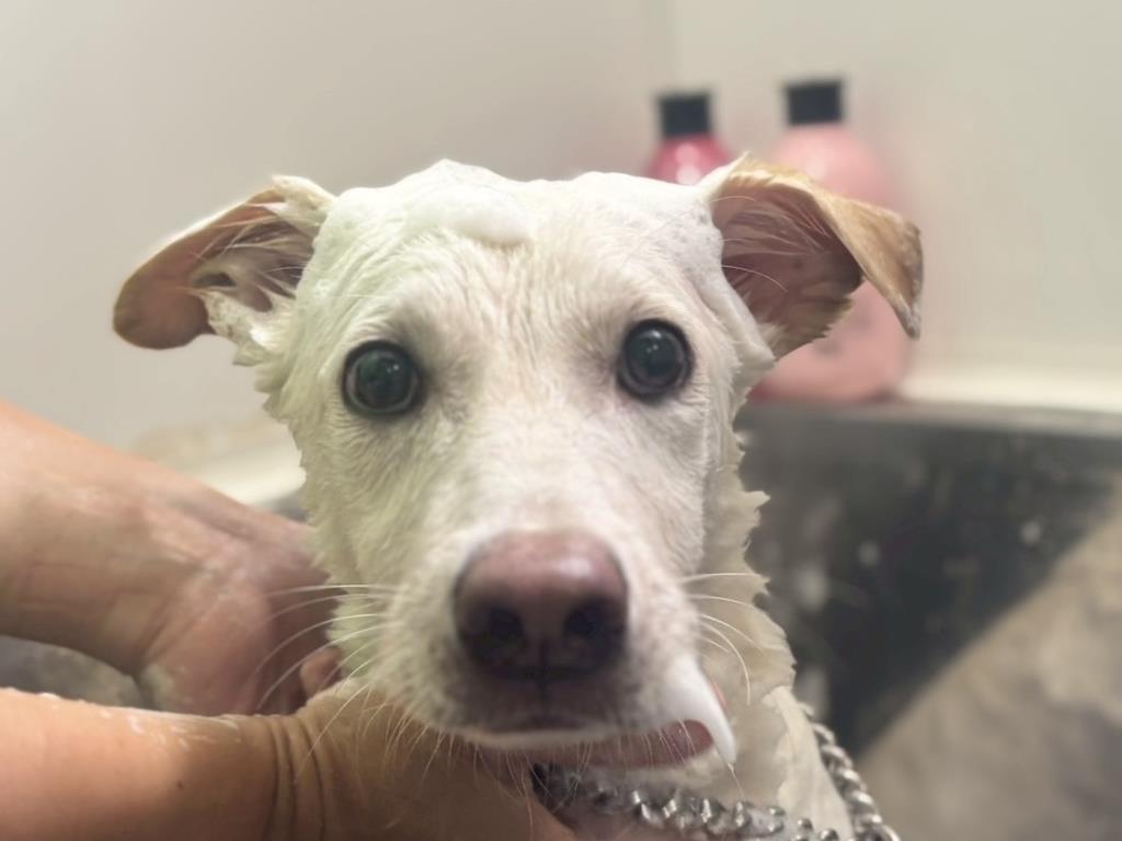 徳島県から兄妹2匹で浜松にやって来た、真っ白な片耳だけ半折れの男の子です⭐️