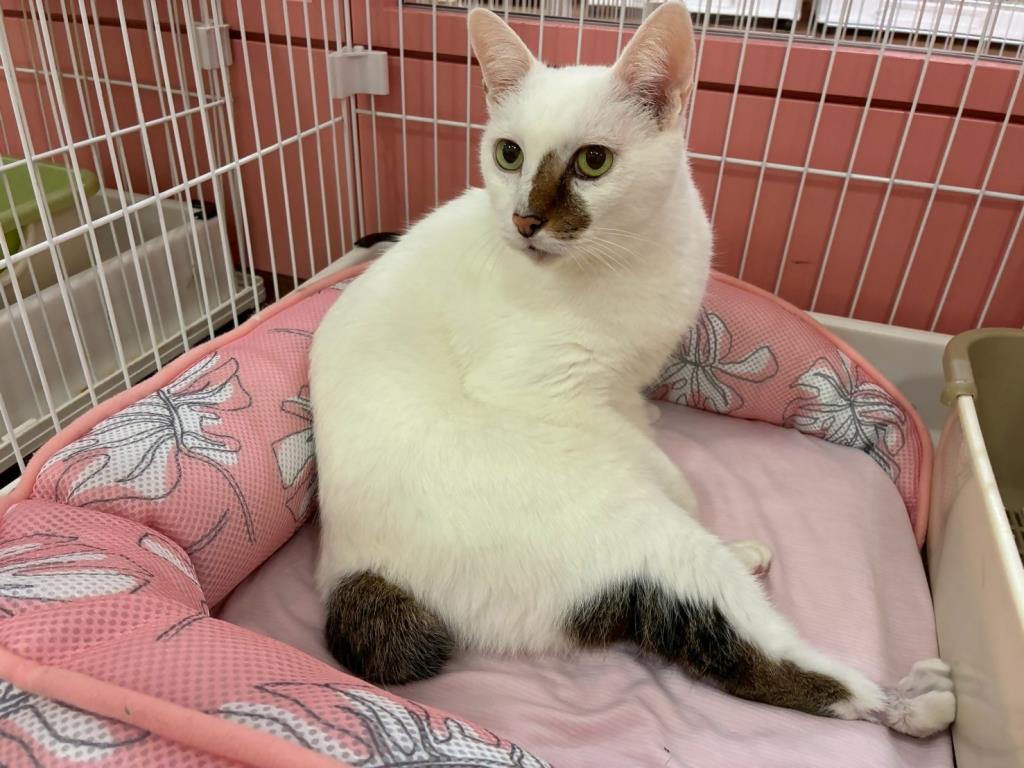 とても甘えん坊なカーネルおじさん。お鼻、しっぽ、太ももにだけ色付けされたユニークな模様をしています。おっとりさんなので穏やかに暮らせると思います🌸