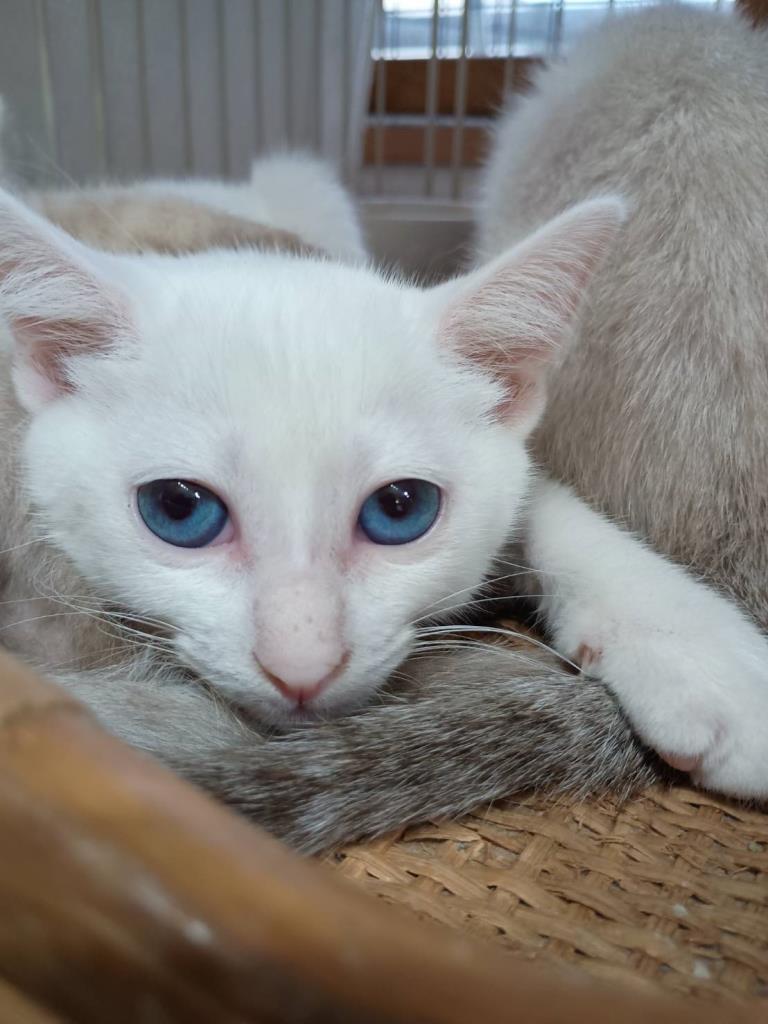 好奇心旺盛でいろんなおもちゃやボールで活発に遊びます。人馴れ途中です。機嫌が良い時はゴロゴロ言いながらナデナデさせてくれますが、機嫌が悪い時はうなってシャーシャー言います。ほかの猫ちゃんと仲良く過ごせます。