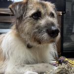 テリア系の垂れ耳さん。口下に髭が生えています。
