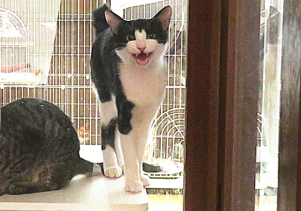 【外見】ハチワレ・白ソックス・しっぽはちっちゃ。