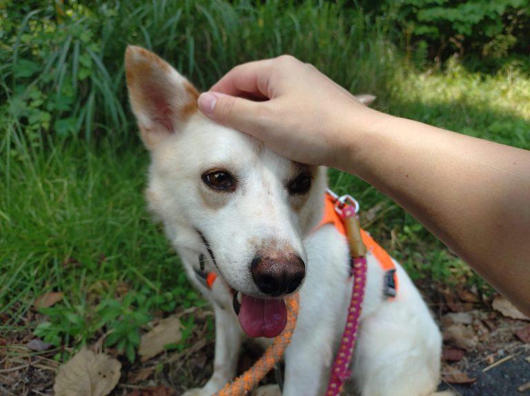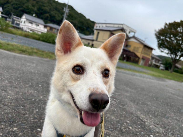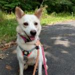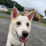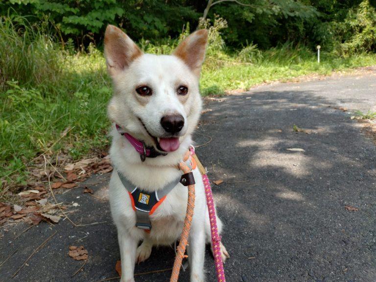 【散歩】車の音には少し驚いてしまいますが、静かな場所だと落ち着いて歩けます。人と向き合うと後ろ引きしてしまう時があります。