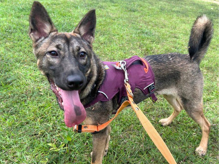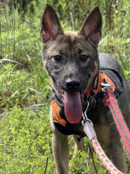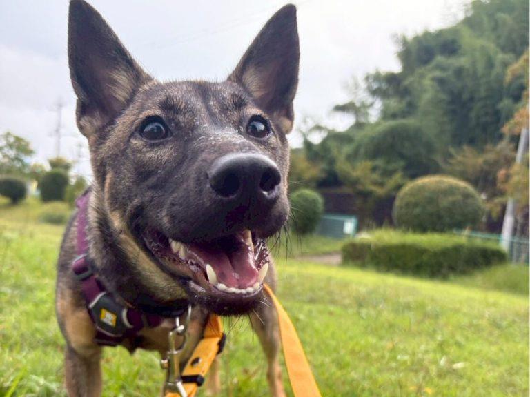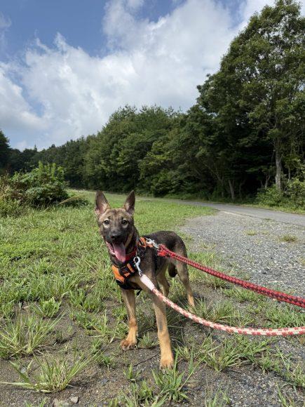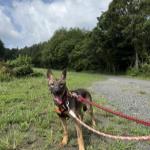 お散歩も尻尾を上げて、とても楽しそうに歩いてくれます。