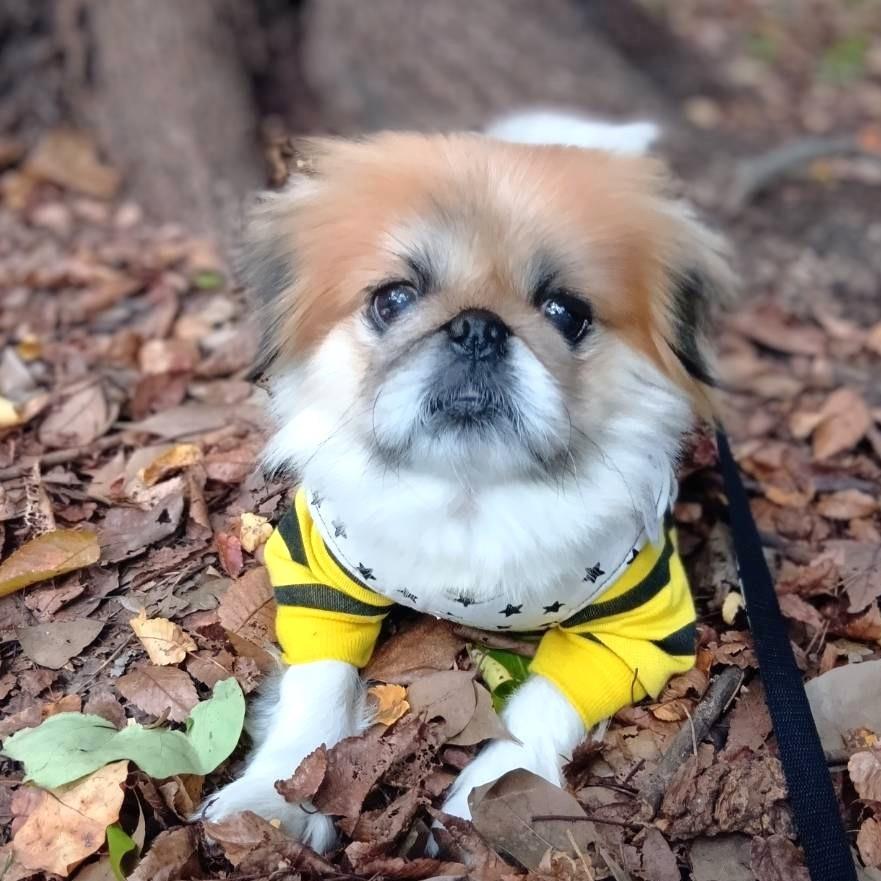 温厚で人懐こく穏やかですが少し頑固な面もあります。終日フリーですが普段はケージで過ごし、ぬいぐるみを舐めて過ごします。ご飯準備中に吠えることがあります。皮膚が弱く週1〜2回の薬用シャンプーが必要で、目ヤニが出やすく1日5〜6回点眼しています。
