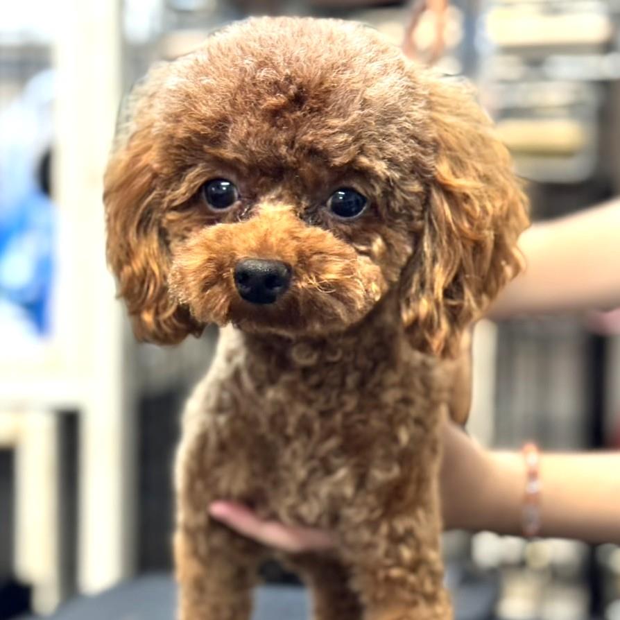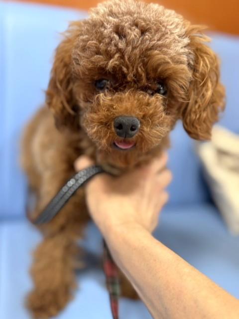 他の犬には興味を示さず、部屋を歩き回って過ごします。疲れると好きな場所で眠ります。自力で食事ができないためシリンジで与えると自分から食べます。水頭症で小脳を圧迫されており避妊手術は不可。視力は弱いですが支障なく過ごしています。