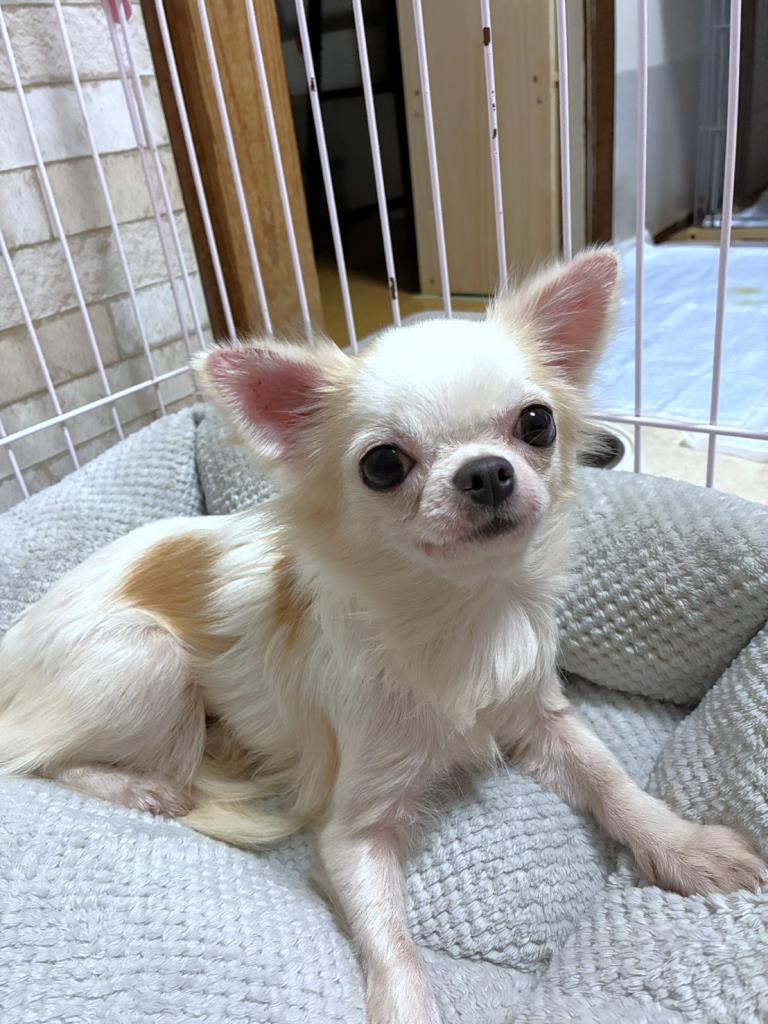 性格:とても臆病な性格です。人は好きで甘えん坊です。近くに寄ってきますが捕まえようとすると逃げてしまいます。他犬とは相性次第です。