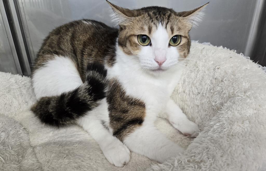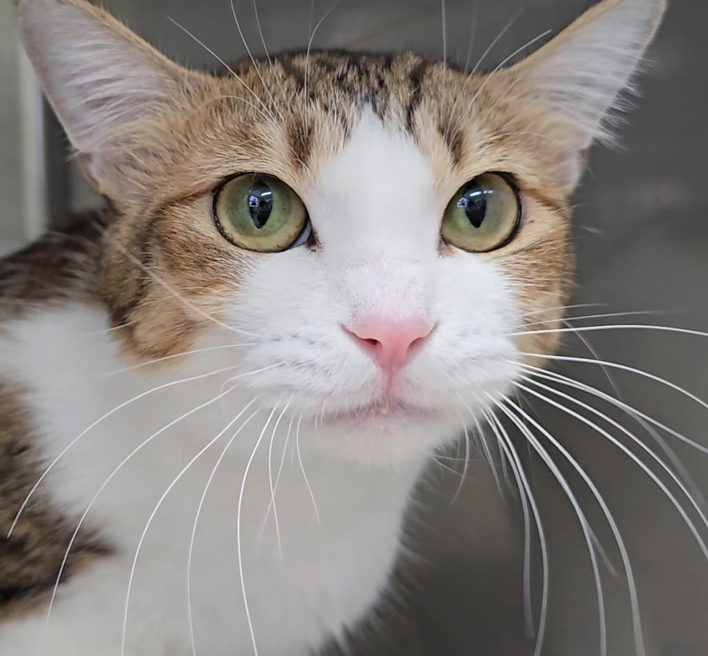 アイラインばっちりの美猫さんです。収容当初は、怖がりゆえにシャーシャーしていましたが、最近は甘える様子も見せてくれるように(o^―^o)